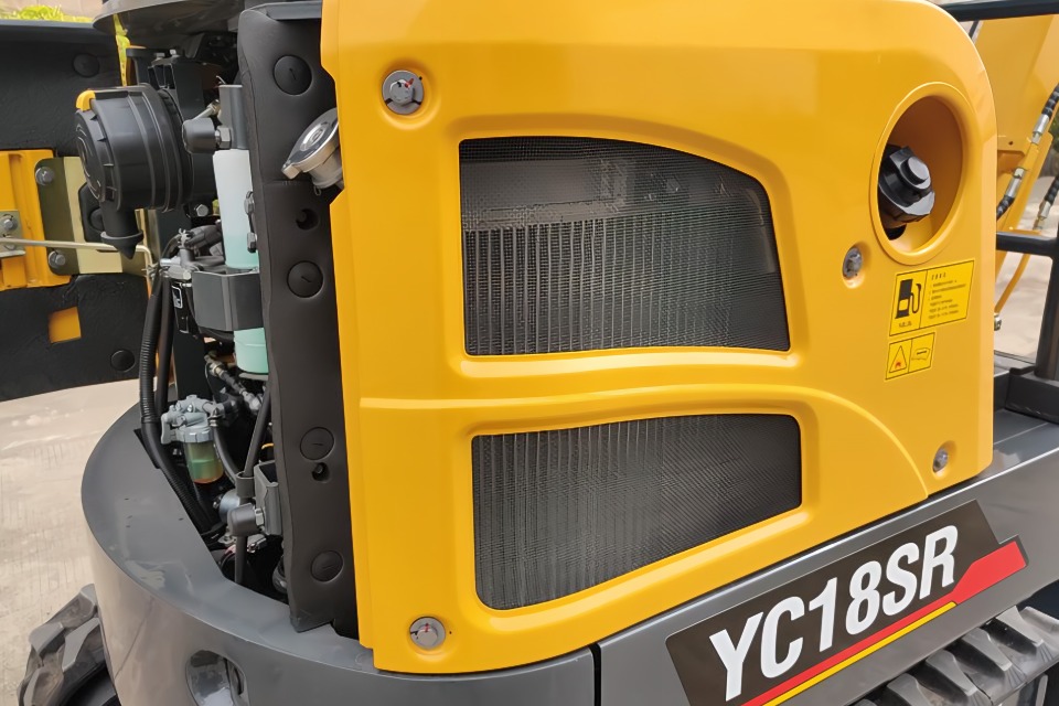 YC18SR отличается не только высокой производительностью, но и прочностью и надежностью. Все металлические детали проходят фосфатирование перед окраской, а сварные соединения контролируются на качество швов и геометрическую точность. Удобный доступ для обслуживания обеспечивается широким капотом двигателя, который позволяет легко достичь аккумулятора, бака с гидравлическим маслом, фильтров и других важных элементов.